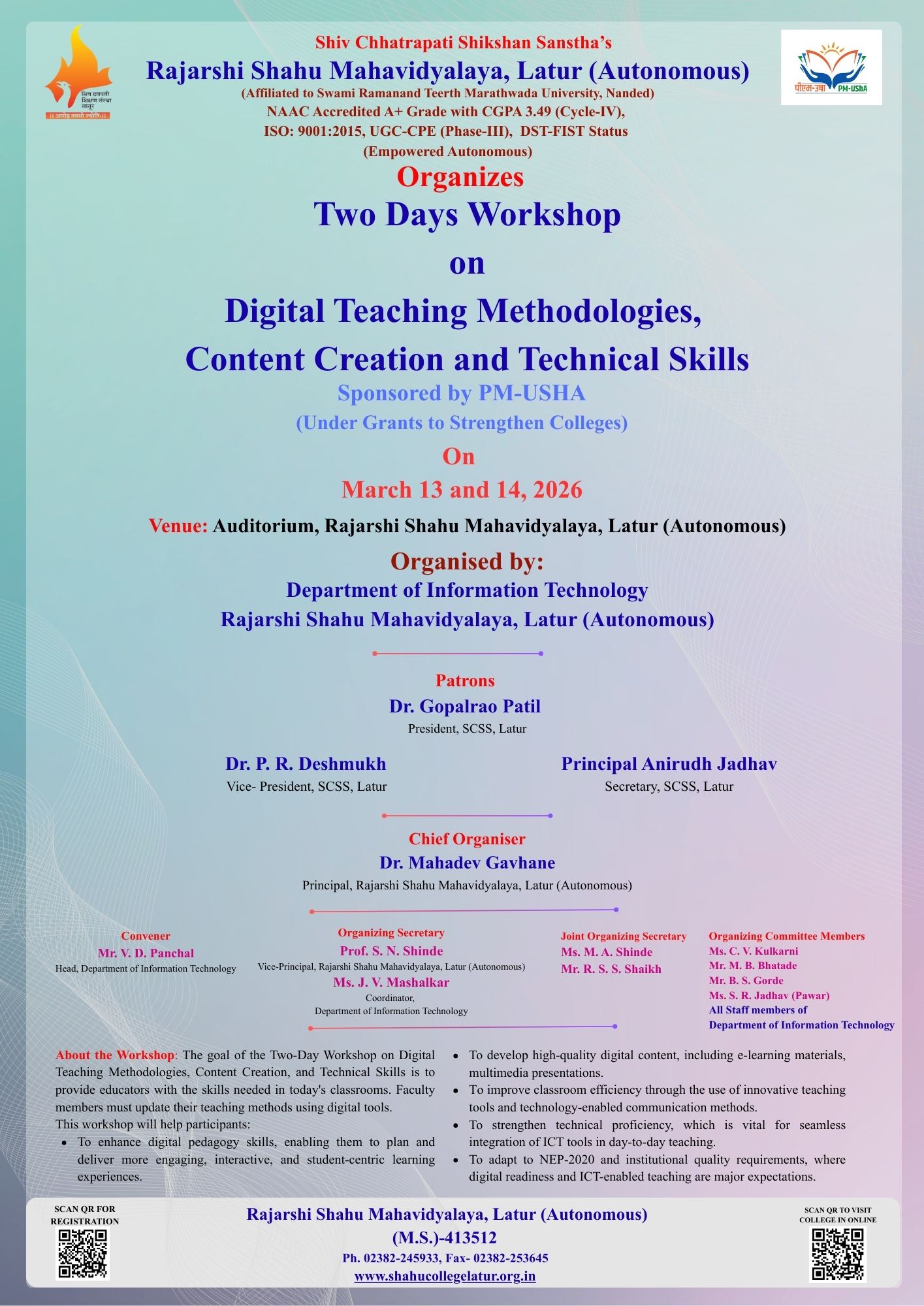 | Two Days Workshop on Digital Teaching Methodologies, Content Creation and Technical Skills | Information Technology | 13-03-2026 to 14-03-2026 | View | |||