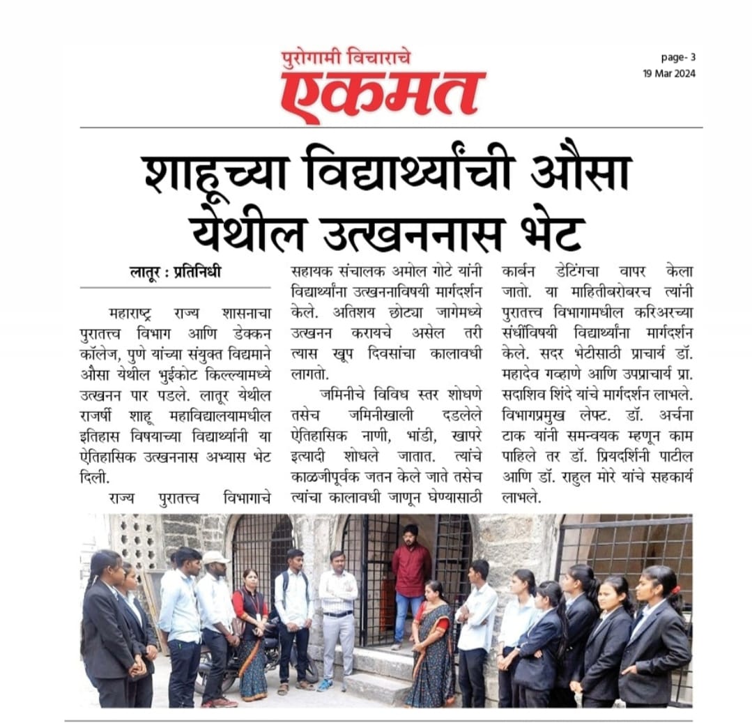 One History Museum is start by our Department. Chhatrapati Shivaji History Museum and Research Center, Latur is the name of this museum. Our object is to preserve our cultural and historical heritage by collecting various evidences to history study. Consistency will be maintained in obtaining evidences of research by the Department of History regularly. It is always challenging task for the Department of History to collect sources and evidences in addition.