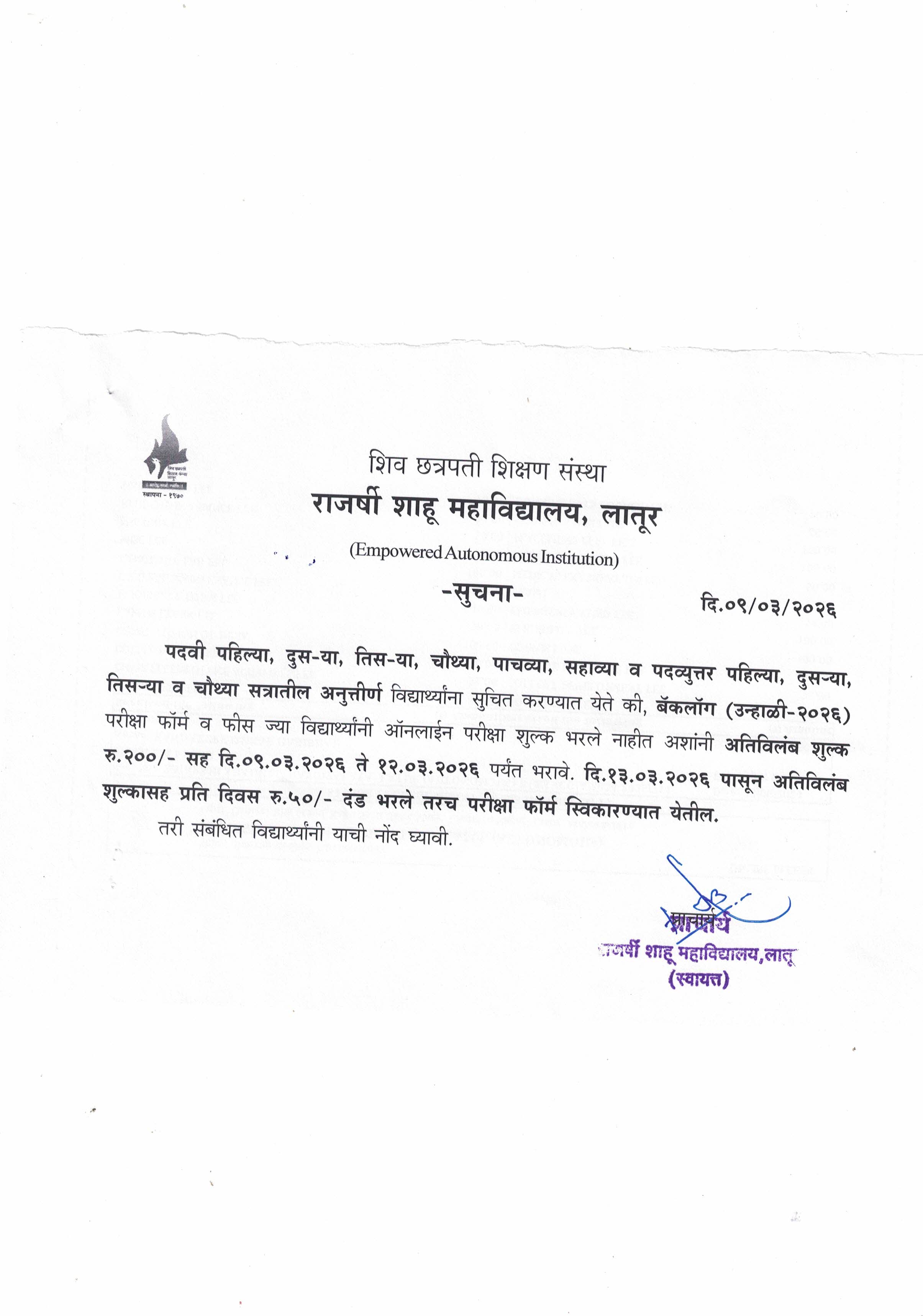 Last Updated on 09/03/2026 Notice for all Backlog Students