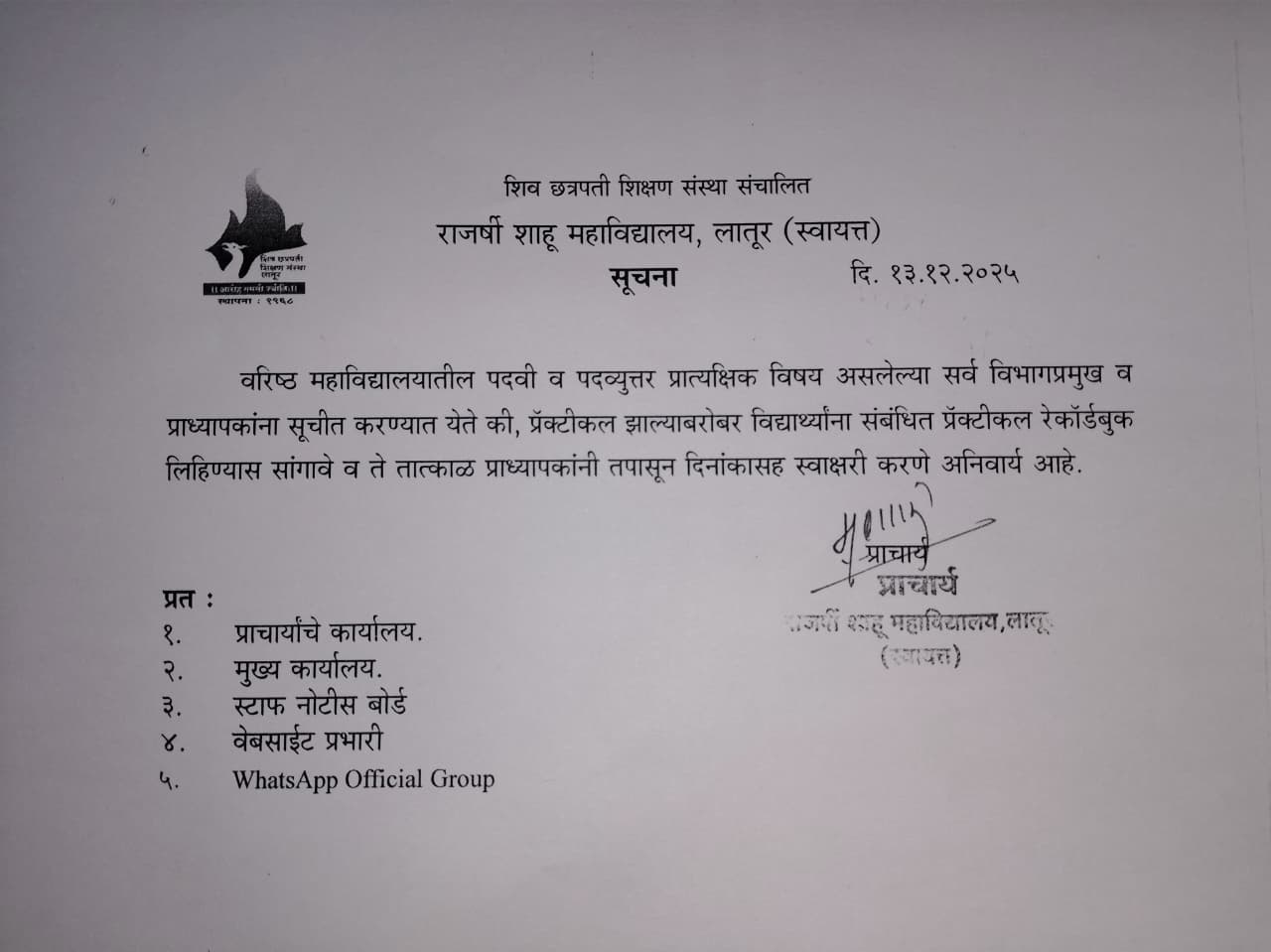 Last Updated on 13/12/2025 Notice for All Teachers Regarding Practical Record Books of Students