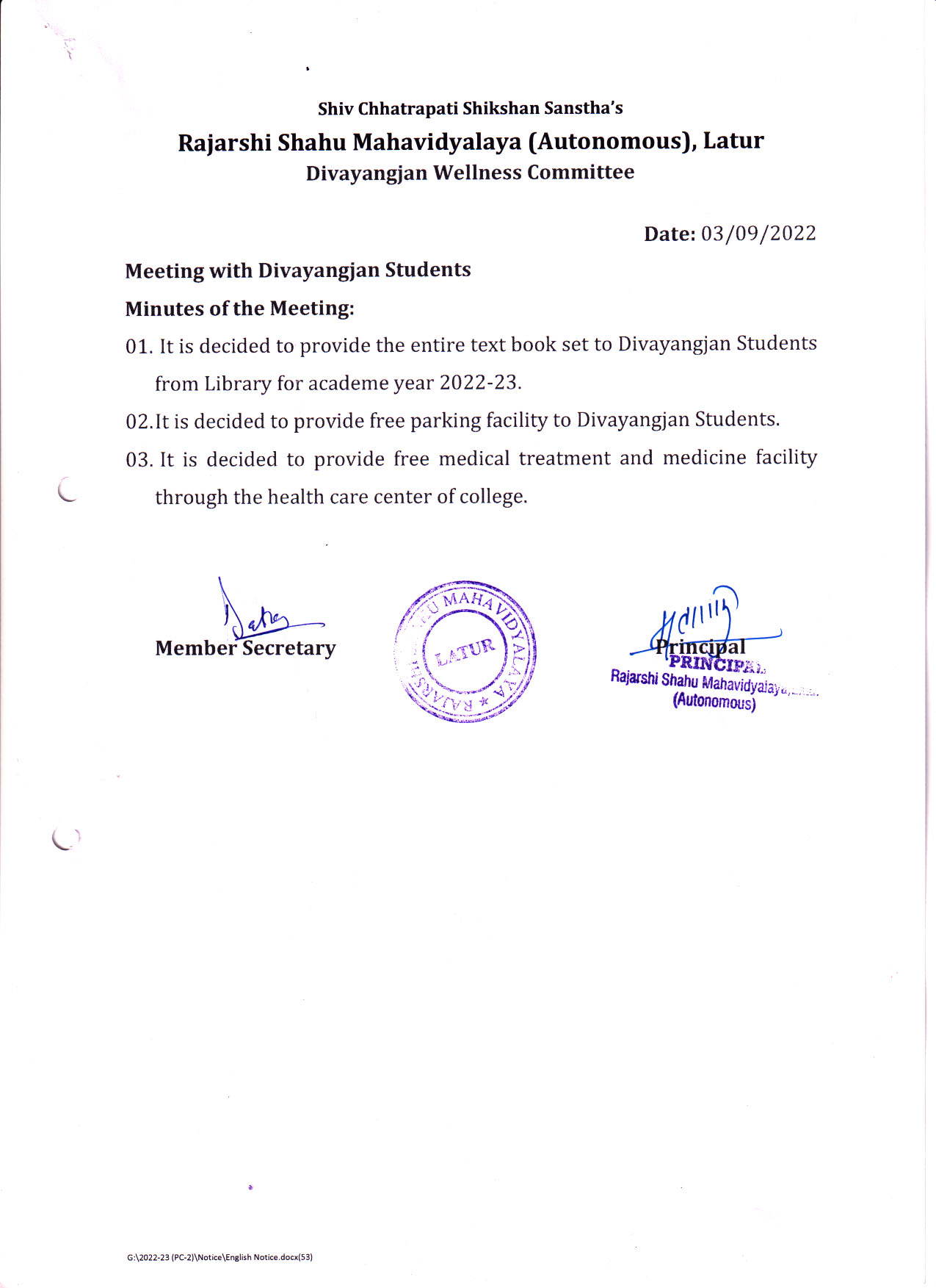 Rajarshi Shahu Mahavidyalaya (Autonomous), Latur recognizes the importance of
